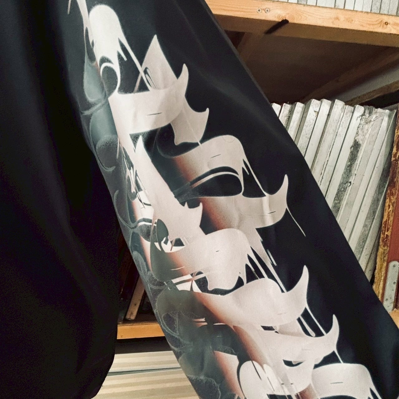 袖にもプリントを入れ、