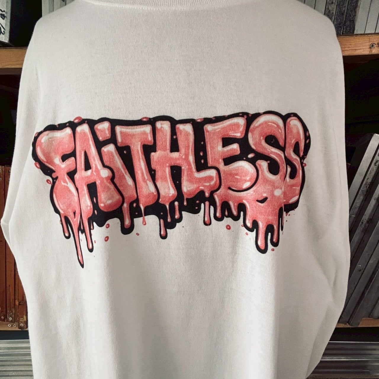 フロントにはFAITHLESSロゴを染み込みプリントで配置。