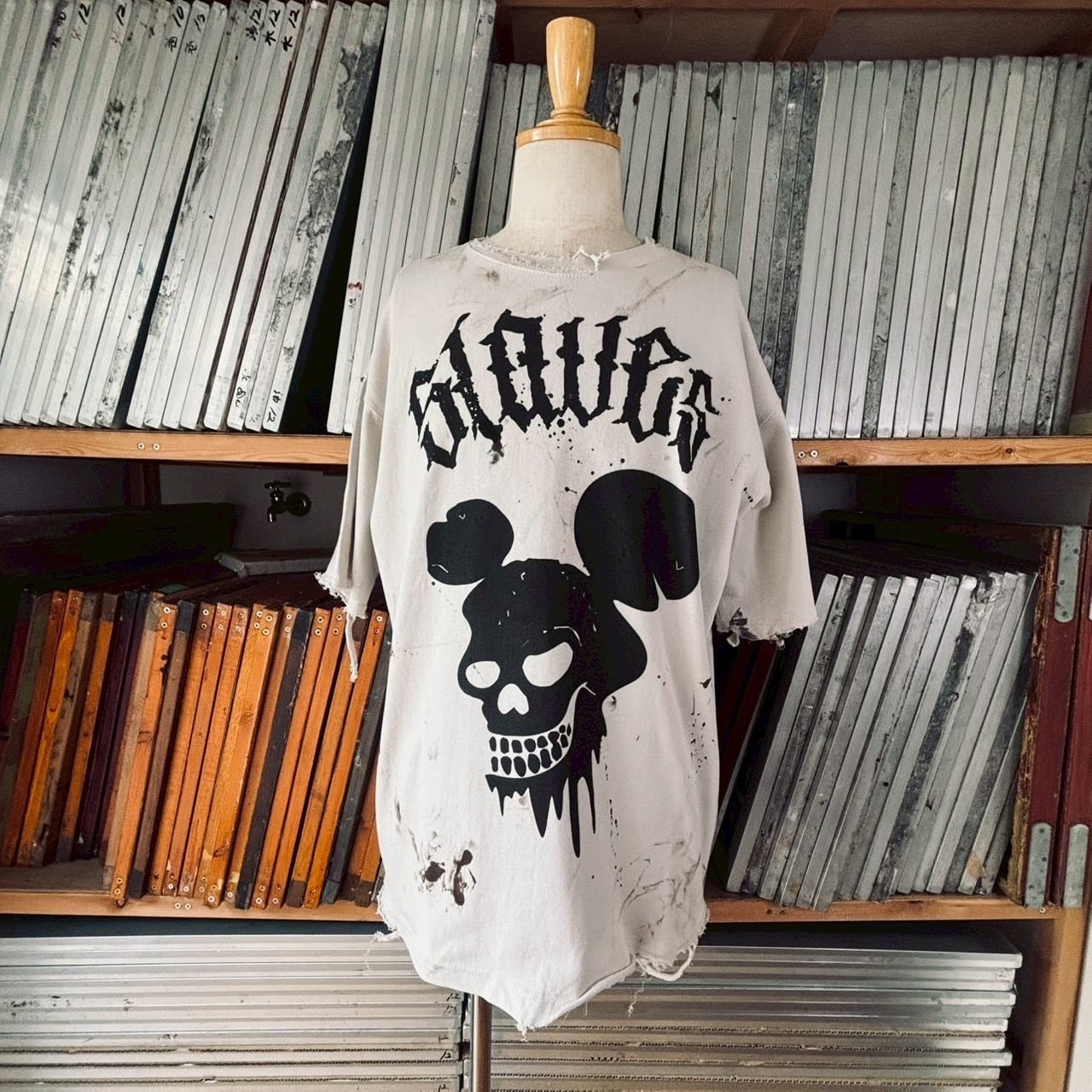 フロントには歪ませた“SLAVES”とスカル。